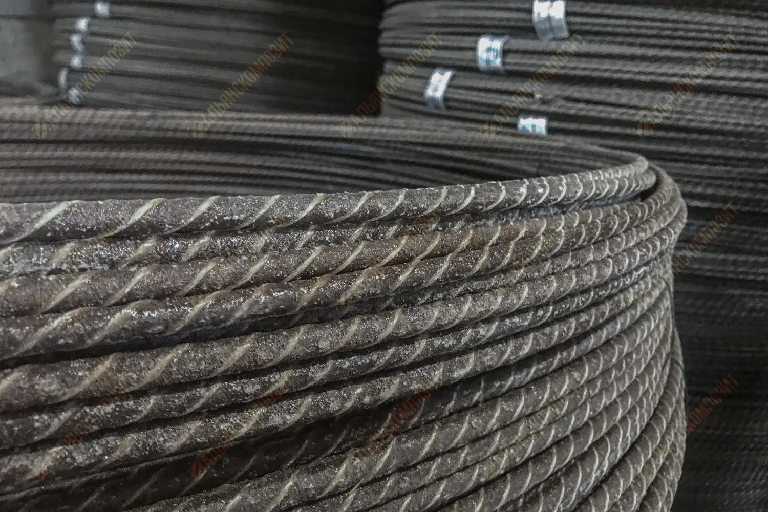 Арматура имеет внешнюю навивку из стекловолокна образуя"ребро" арматуры. Дополнительное внешнее ребро придает стержню периодический профиль, создает анкеровку в бетоне и увеличивает поверхность арматуры, что повышает сцепление стержня с бетоном.